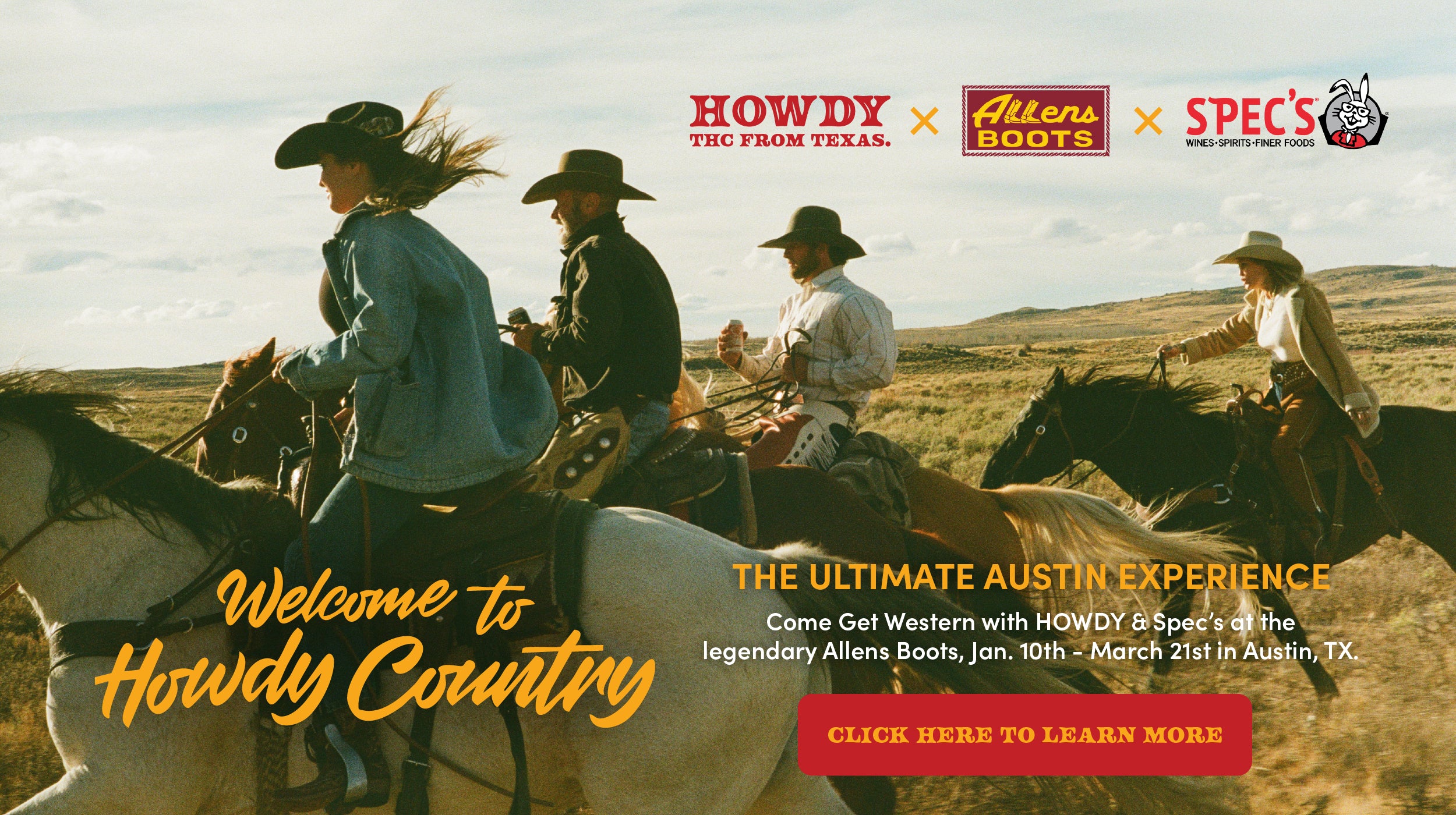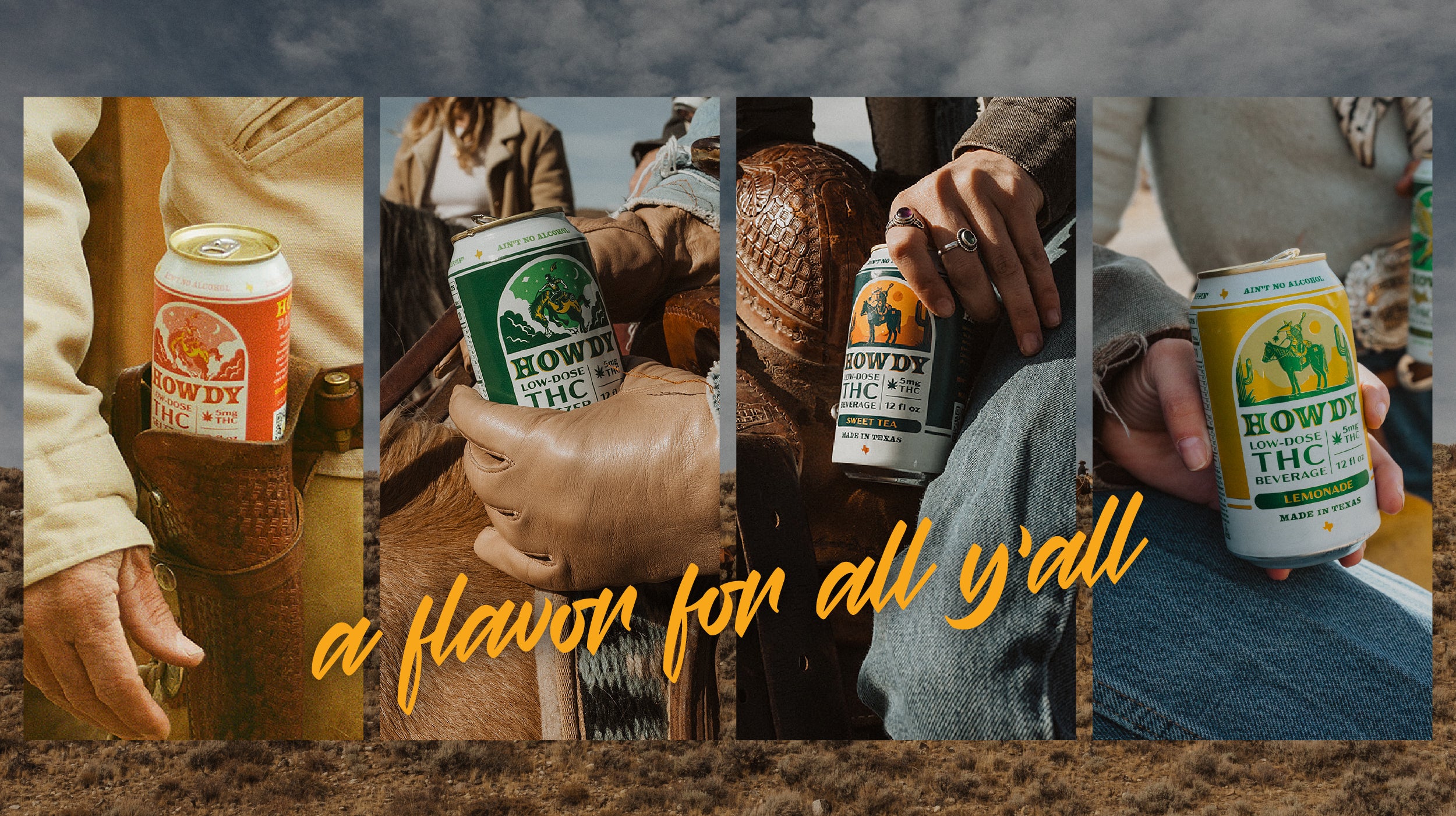 Made in Texas, HOWDY THC Seltzers are 100% Hemp-Derived, delivering 2.5mg or 5mg of THC per can. With classic cowboy flavors like Ranch Water, Paloma, Sweet Tea and Lemonade we strive to help you settle back on the weeknights and get a little western on the weekends, but you’ll never get a hangover from products. So, say Howdy and pick up a 4 pack to enjoy tonight and keep an eye out for new flavors and spirits coming soon!